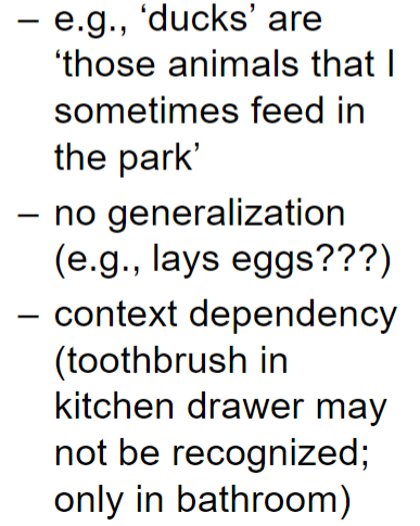 - Central tendency e.g. robin x graded membership (harder to categorize) e.g. pinguin