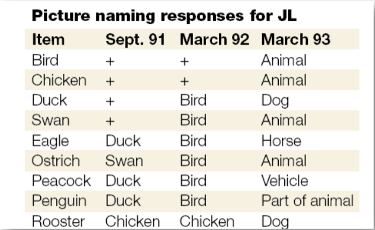 How would we “define” the loss pattern of semantic dementia?