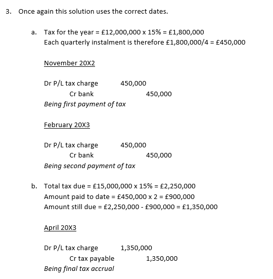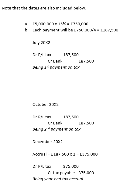 a. At the time the first two instalments were made a taxable profit of £12,000,000 was expected. Prepare the journals for the first two instalments.