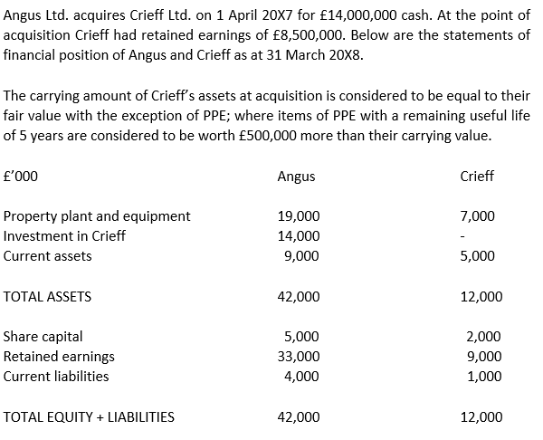 Prepare the group statement of financial position of the Angus group as at 31 March 20X8.