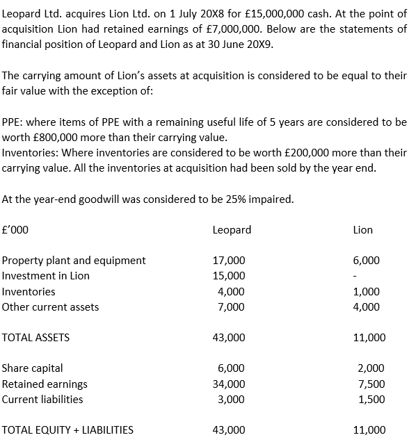 Prepare the group statement of financial position of the Leopard group as at 30 June 20X9.