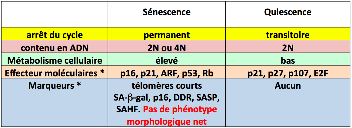 Quelles sont les différences entre cellules en sénescences et cellules quiescentes ?