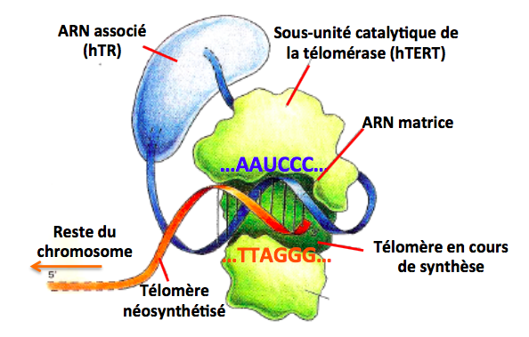 Les télomères sont synthétisés grâce à des enzymes spécifiques: les télomérases
