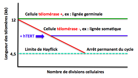 La limite de Hayfick correspond au nombre maximal de division que la cellule peut effectuer, c’est à dire à la taille minimal que le télomère peut avoir.