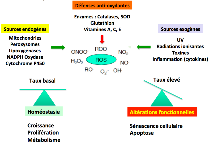 Quels sont les différents stress oxydant impliqué dans la sénéscence ?