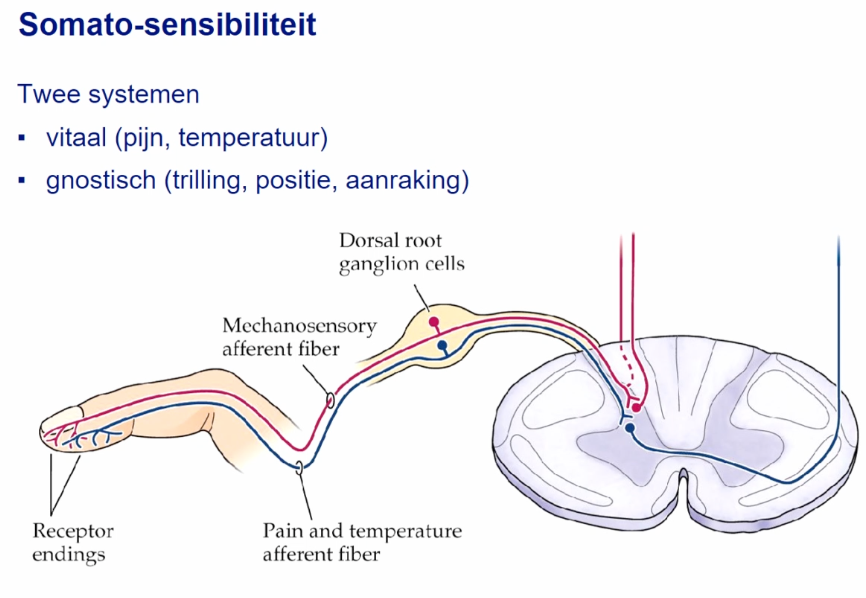 somatosensibele info: vanuit huid, spieren, pezen gewrichten en botten (kan onderverdeeld worden in vitaal en gnostisch)