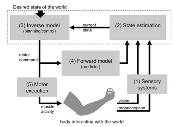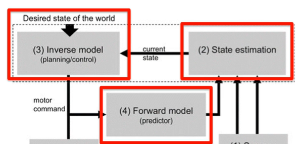 Step 3- Impairments in inverse model (step 3) would result in longer reaction times before a movement is performed (to formute a motor plan)