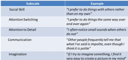 Autistic people tend to have higher levels of self-reported traits compared to non autistic people (eg. in table)