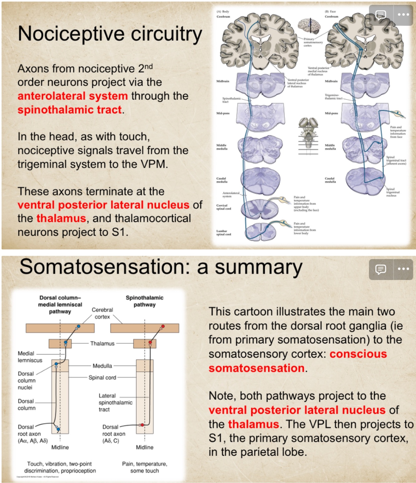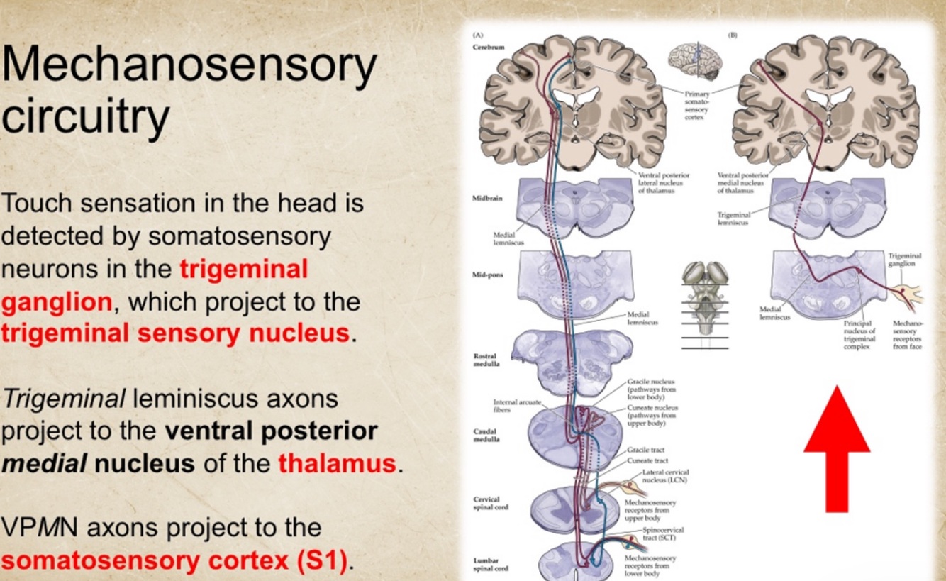 Cortex- body somatosenstion, head somatosensation and taste and affective pain/limbic basal ganglia circuits