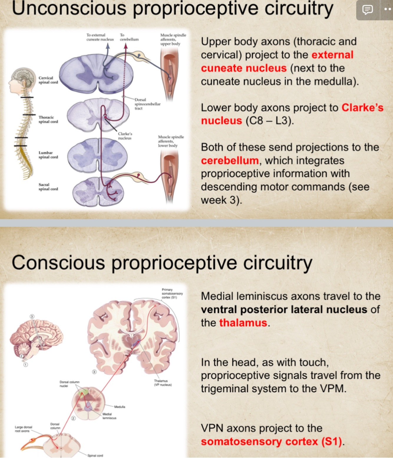 Unconscious vs conscious proprioceptive circuitry