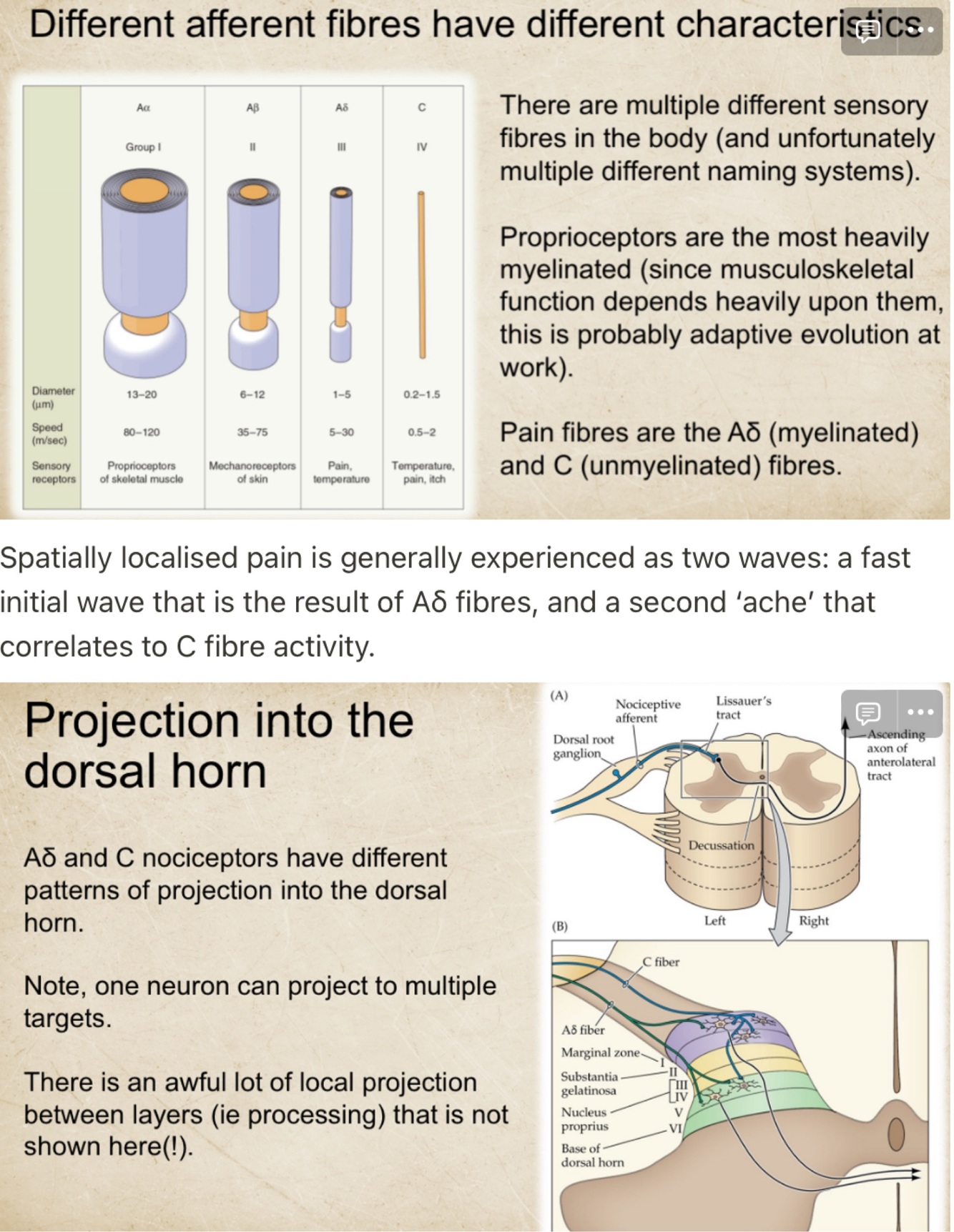 What afferent fibres are involved in pain?