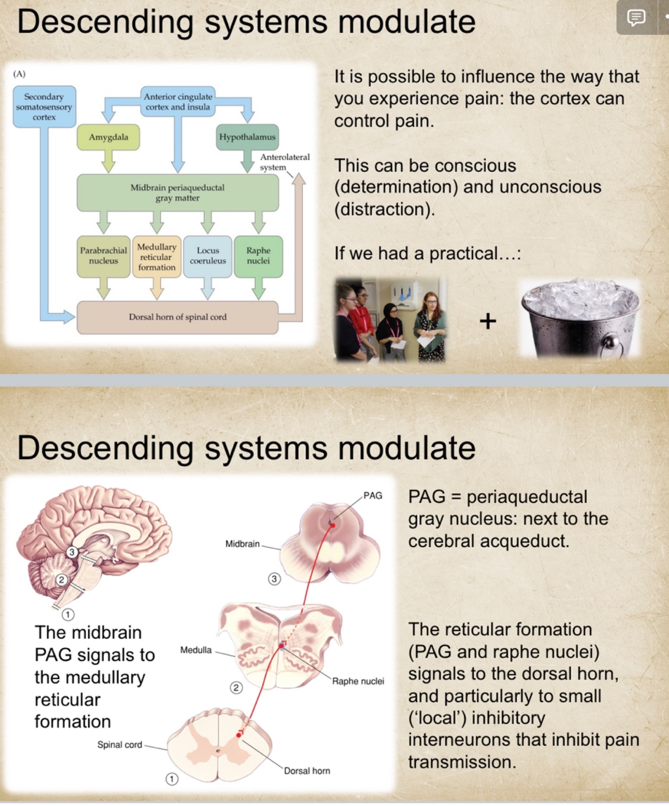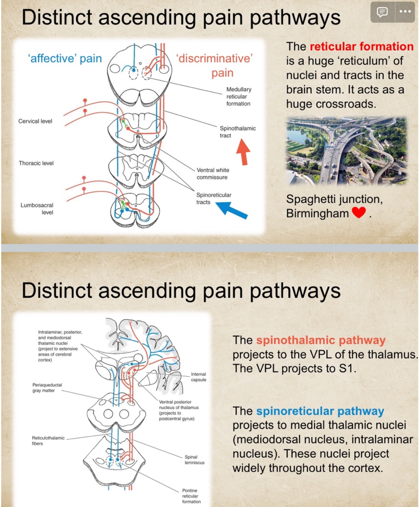 First (sensory-discriminative) v second (affective-motivational) pain pathway