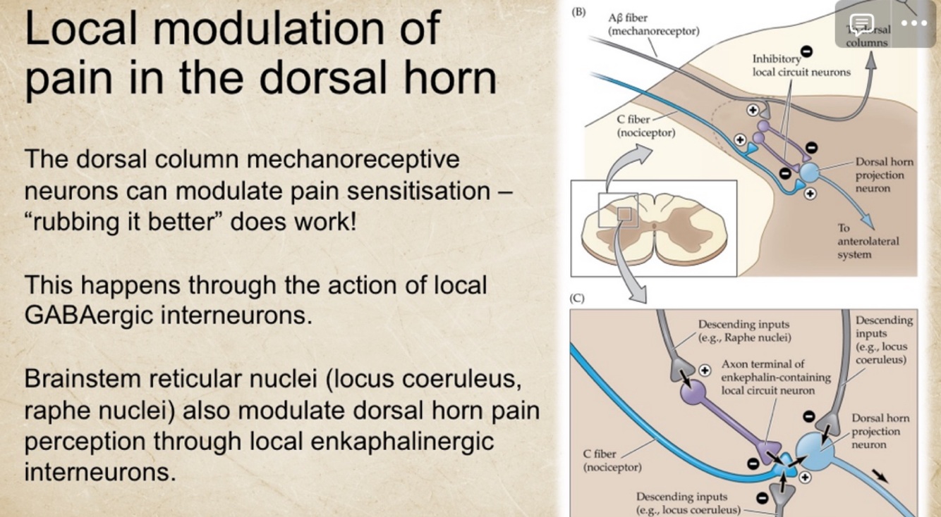 What is the local modulation of pain in the dorsal horn?