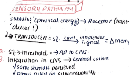 Describe in general what a sensory pathway involves