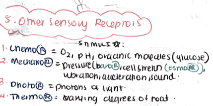 Give examples of 4 other types of sensory receptors