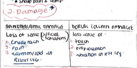 How can somatic senses be damaged and where/ what does it lead to?