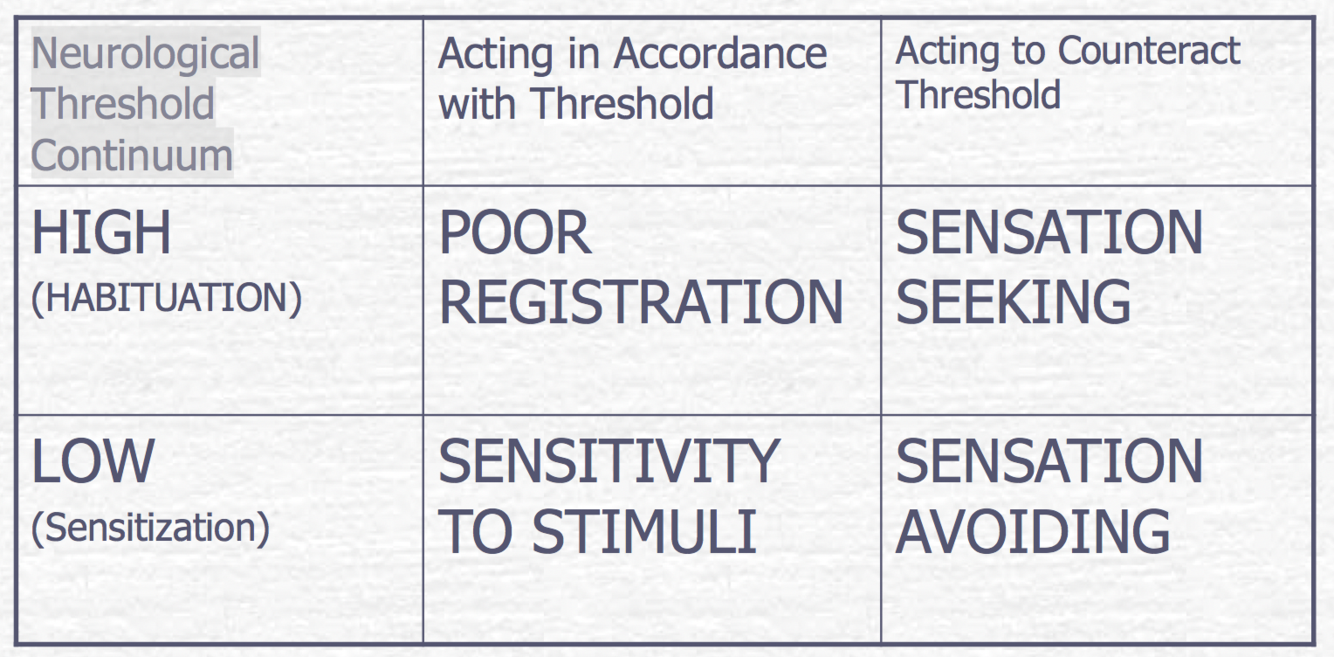 (Notices sensory stimuli much less than others) Doesn’t get the jokes as quick