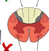 tests both ascending pathways if anterior spinal artery block, anterior part is damaged (red part anterior, as looking at cord from above in pic), so pain and temp loss occurs below level of lesion (at higher levels, fibres can still cross) dorsal column still intact ie light touch (dorsal in posterior part)