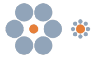E.g. attached image - Tells us that the orange circles are diff sizes bc they are next to diff sized grey circles, even tho orange circles are actually the same size. Although the circles are the same size, our brains think they’re diff sizes bc we compare them to their surroundings.