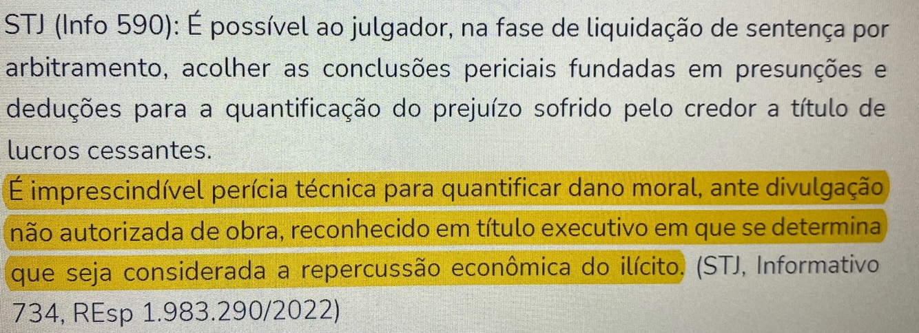 Perícia técnica para quantificar dano moral de divulgação não autorizada de obra