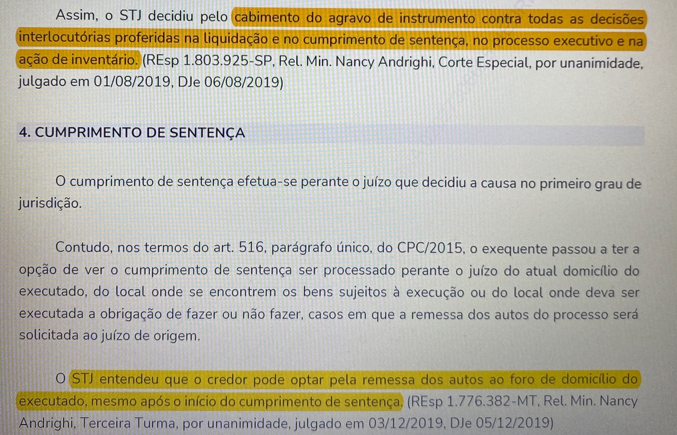 STJ (Info 688): Sob a égide do Código de Processo Civil de 2015, é irrecorrível o ato judicial que determina a intimação do devedor para o pagamento de quantia certa. (REsp 1.837.211-MG, Rel. Min. Moura Ribeiro, Terceira Turma, por unanimidade, julgado em 09/03/2021, DJe 11/03/2021)