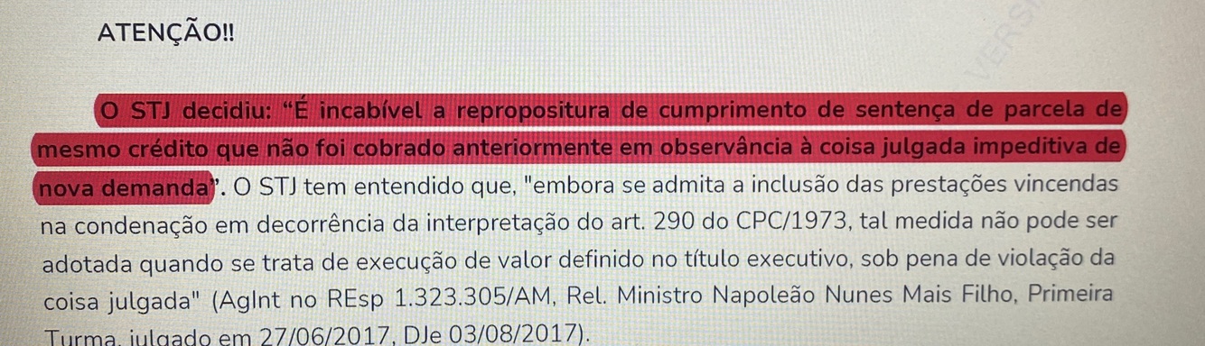 Fracionamento do cumprimento de sentença sobre o mesmo crédito