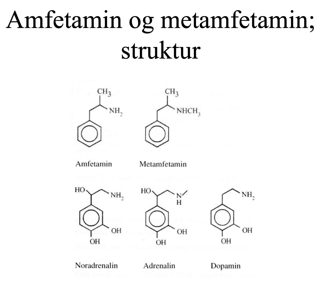 Hvordan er den kjemiske strukturen til amfetamin og metamfetamin?