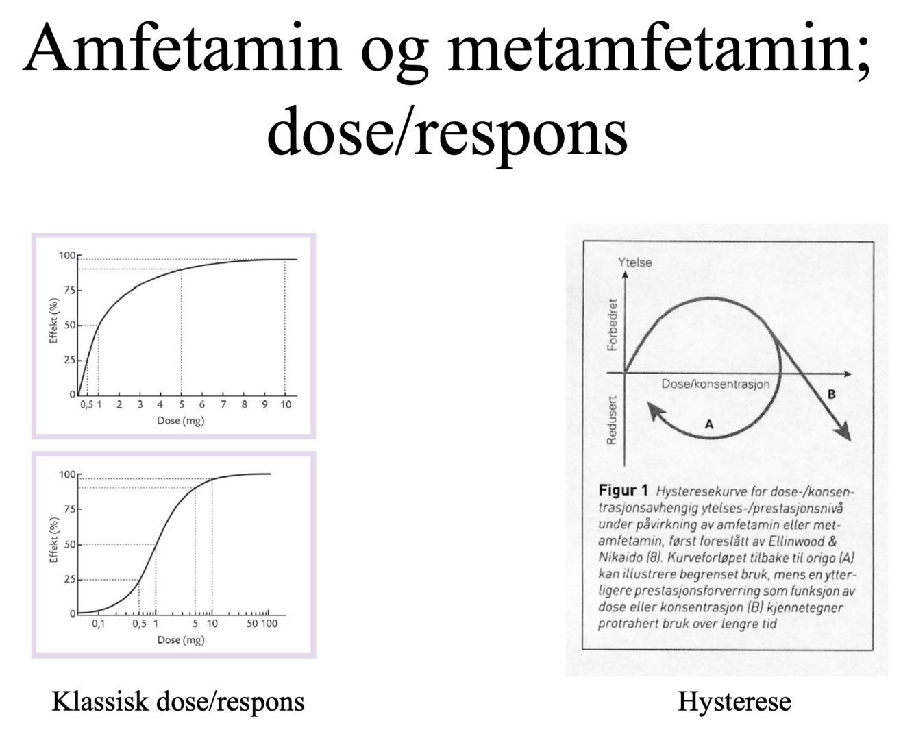 Hvordan er dose/responskurven til amfetamin/metamfetamin?