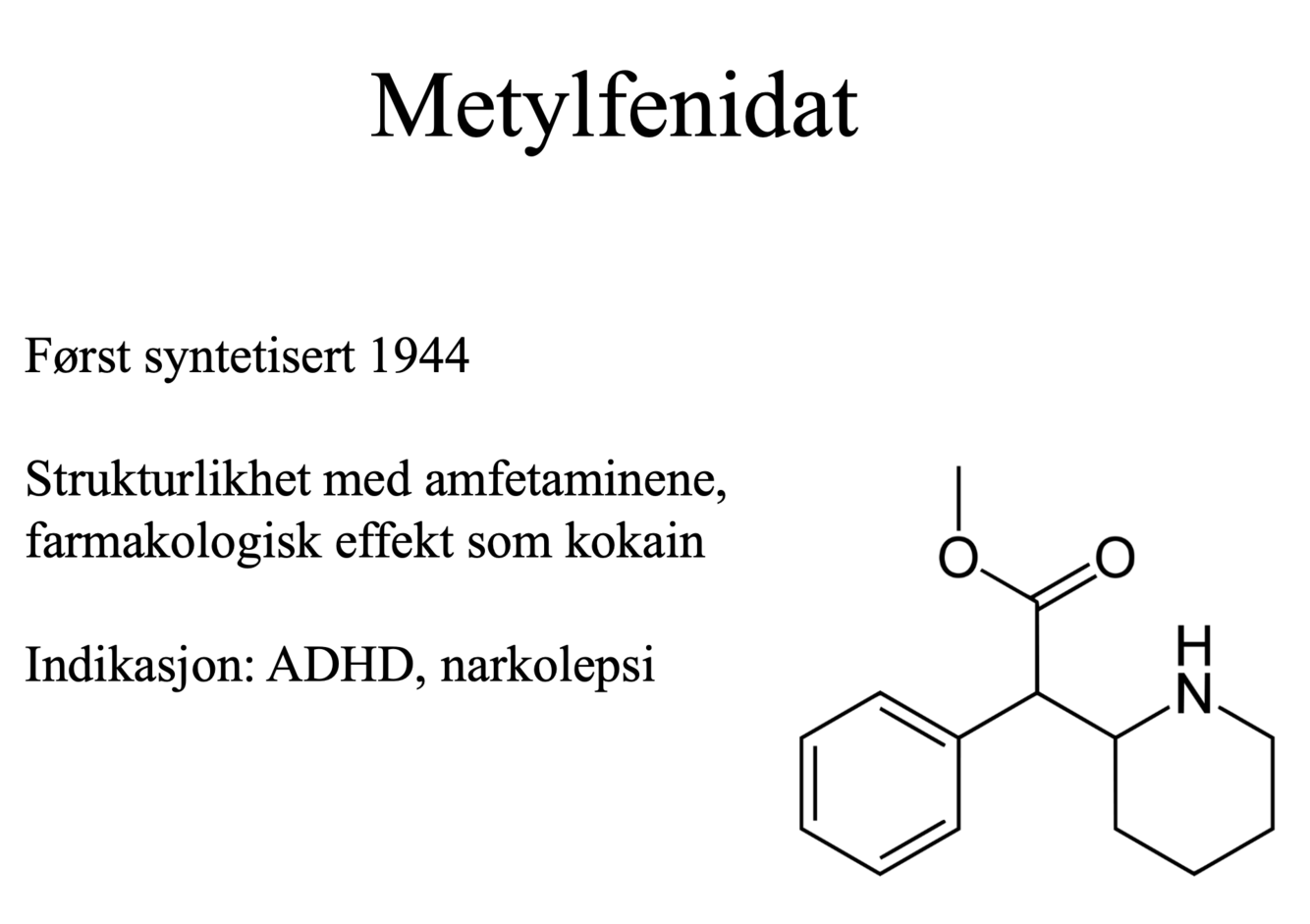 Hva kjennetegner strukturen og effekten av metylfenidat?