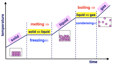 Draw a graphical representation and describe for a change of state involving temperature changes