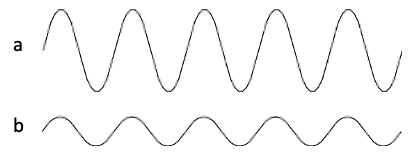 Compare the sound of the two waves in the image in terms of loudness and pitch.