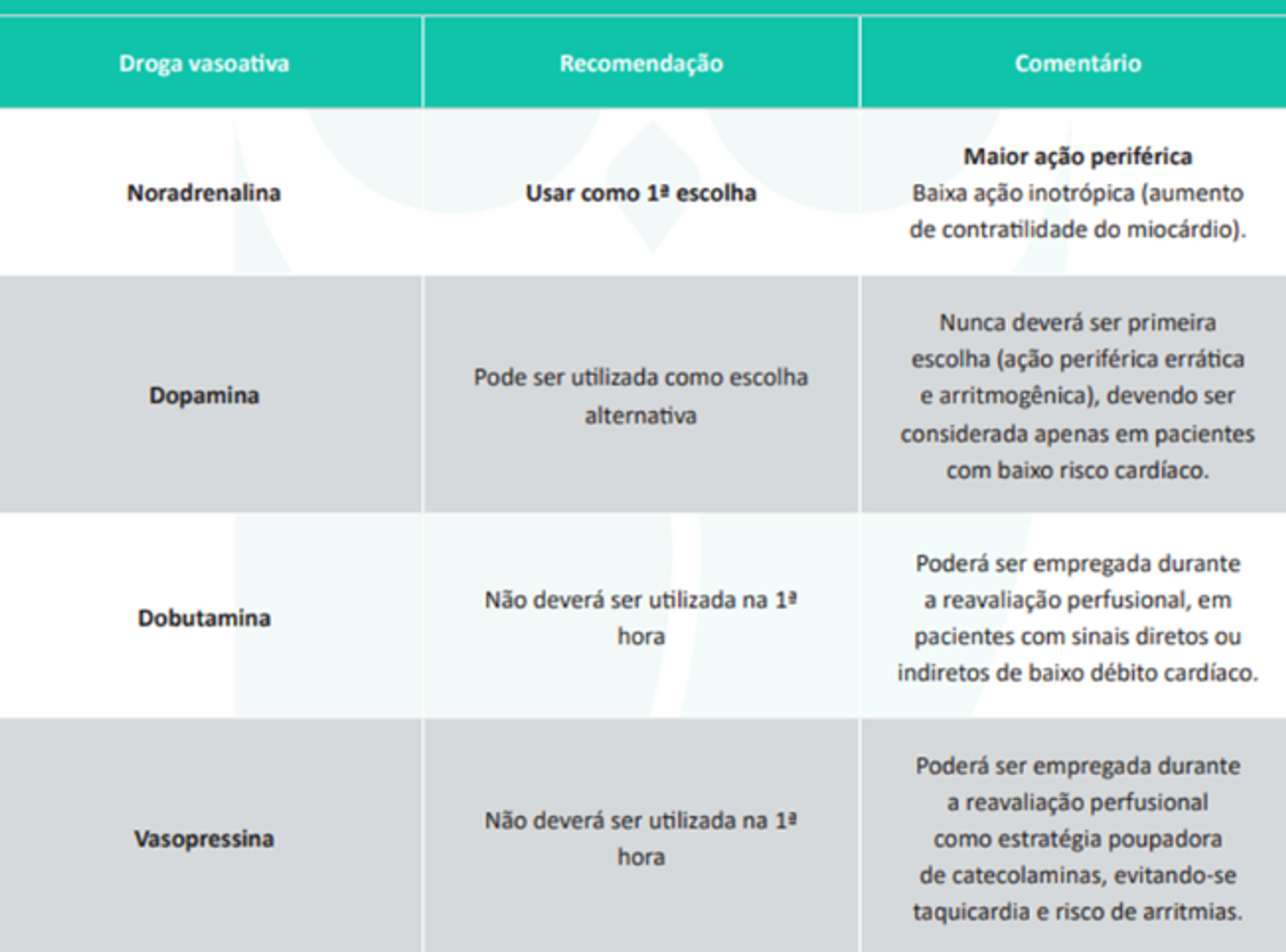 Qual a droga vasoativa de primeira escolha no choque séptico?