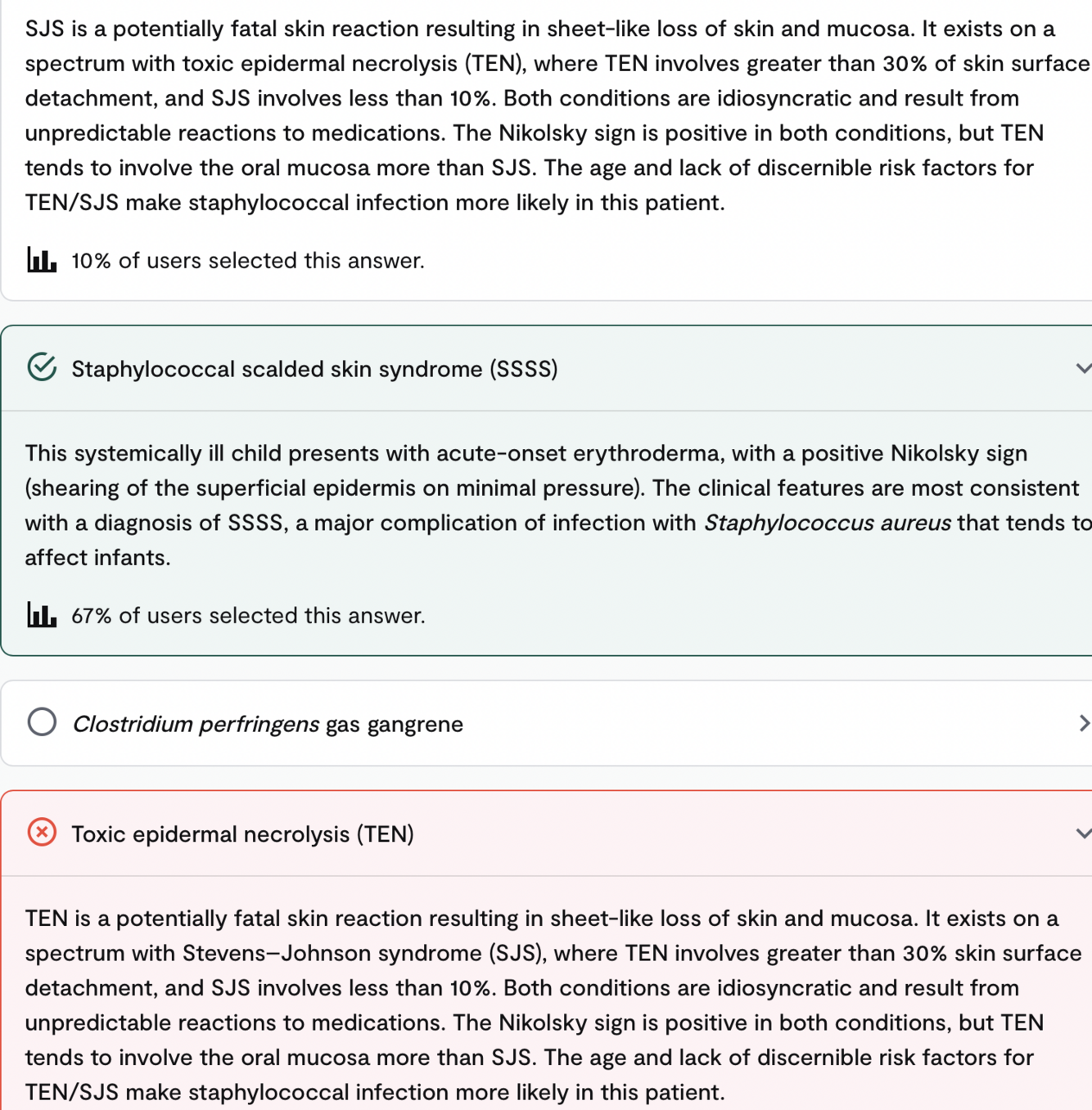 SSSS typically follows recent staph infection whilst TEN typically follows medication use (usually antibiotics or anticonvulsants)