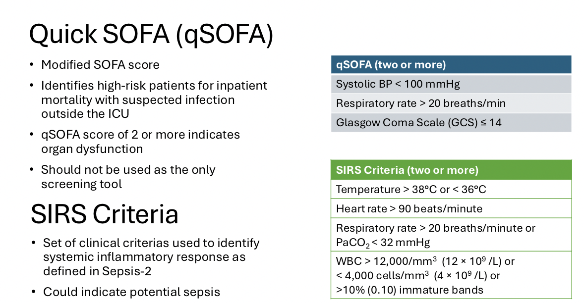 Tell me about quick SOFA and the SIRS Criteria