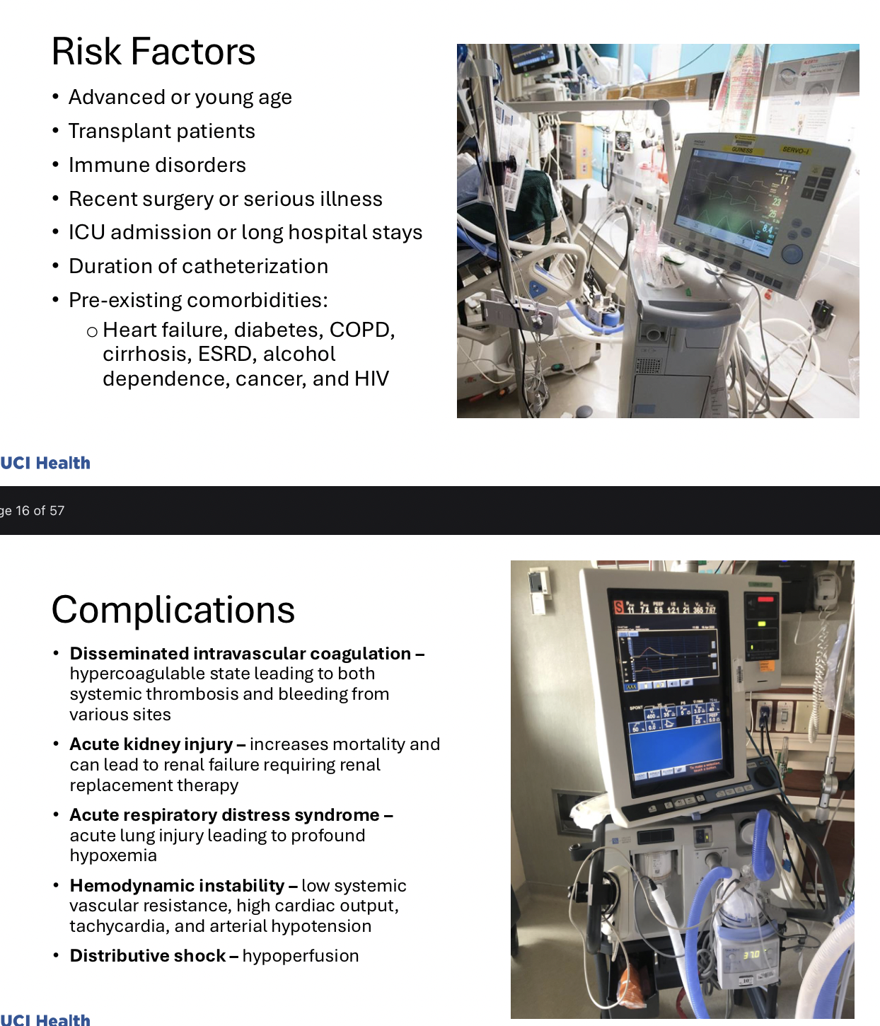 What are the risk factors and complications for sepsis?