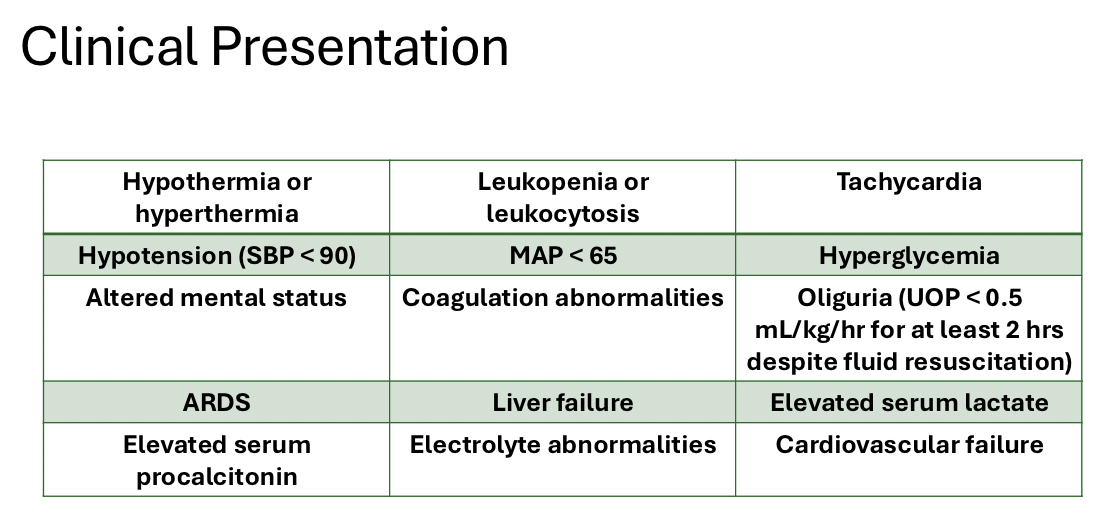 What are the clinical presentations of sepsis?