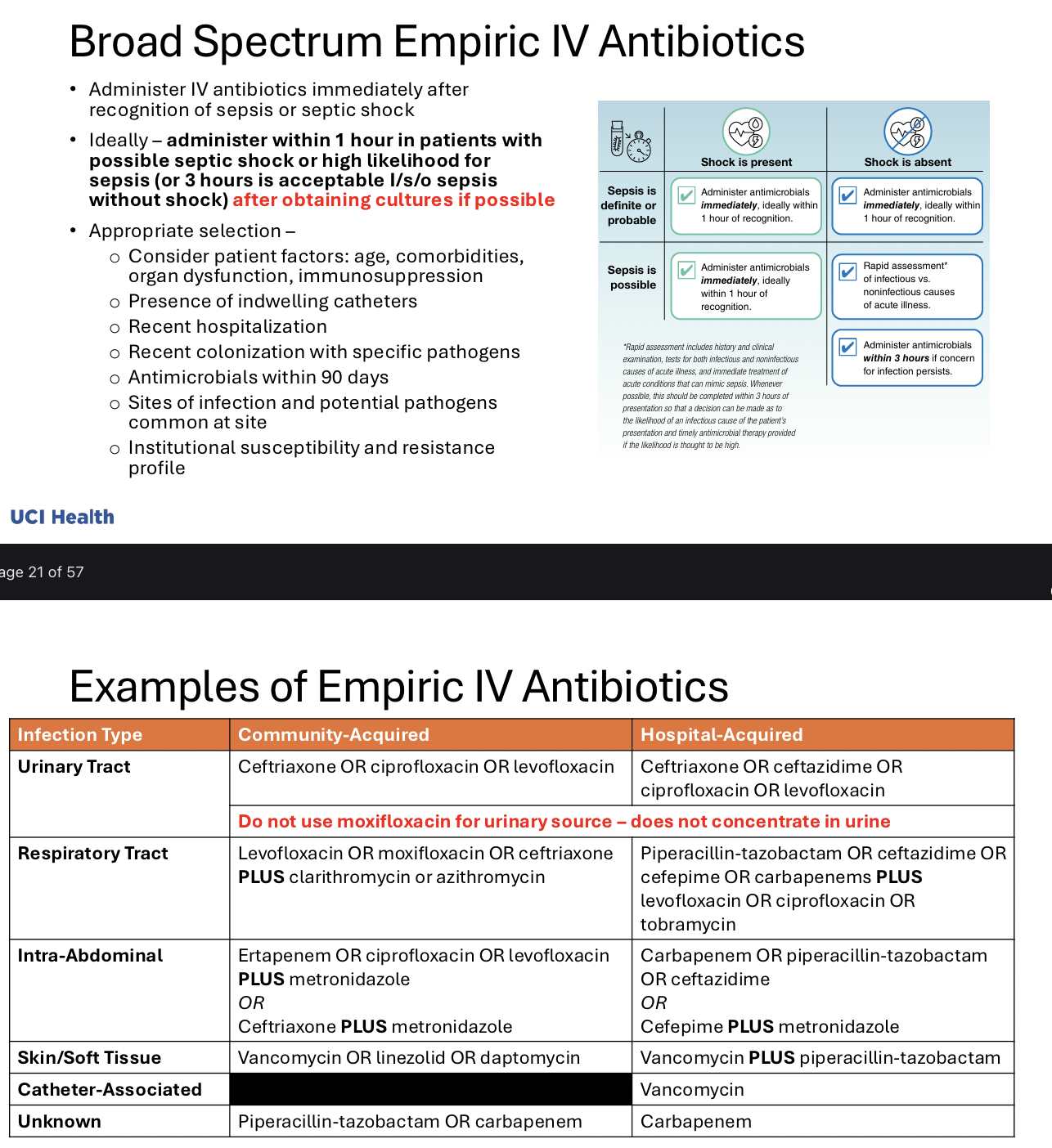 Tell me about broad spectrum empiric IV antibiotics and some examples (1)