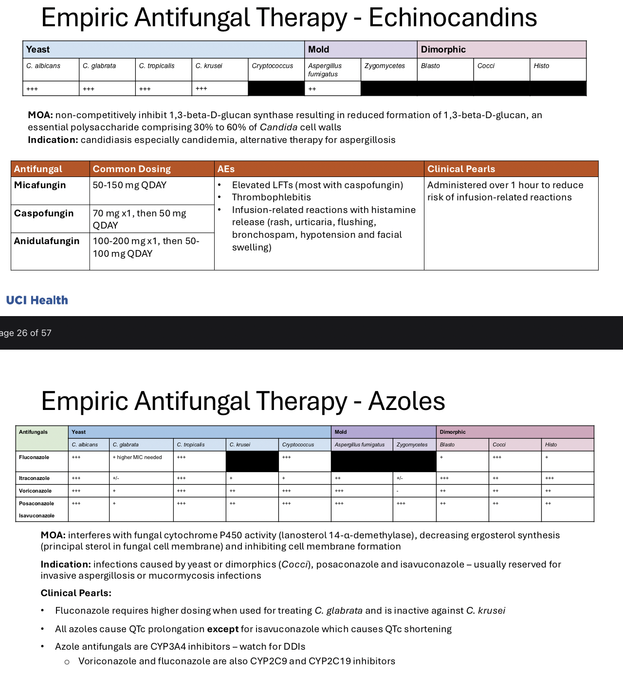 Tell me about empiric antifungal therapy (2) Echinocandins and azoles
