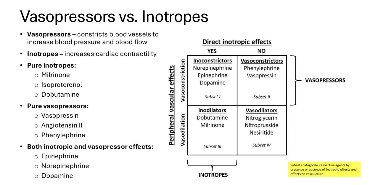 Tell me about vasopressors vs inotropes