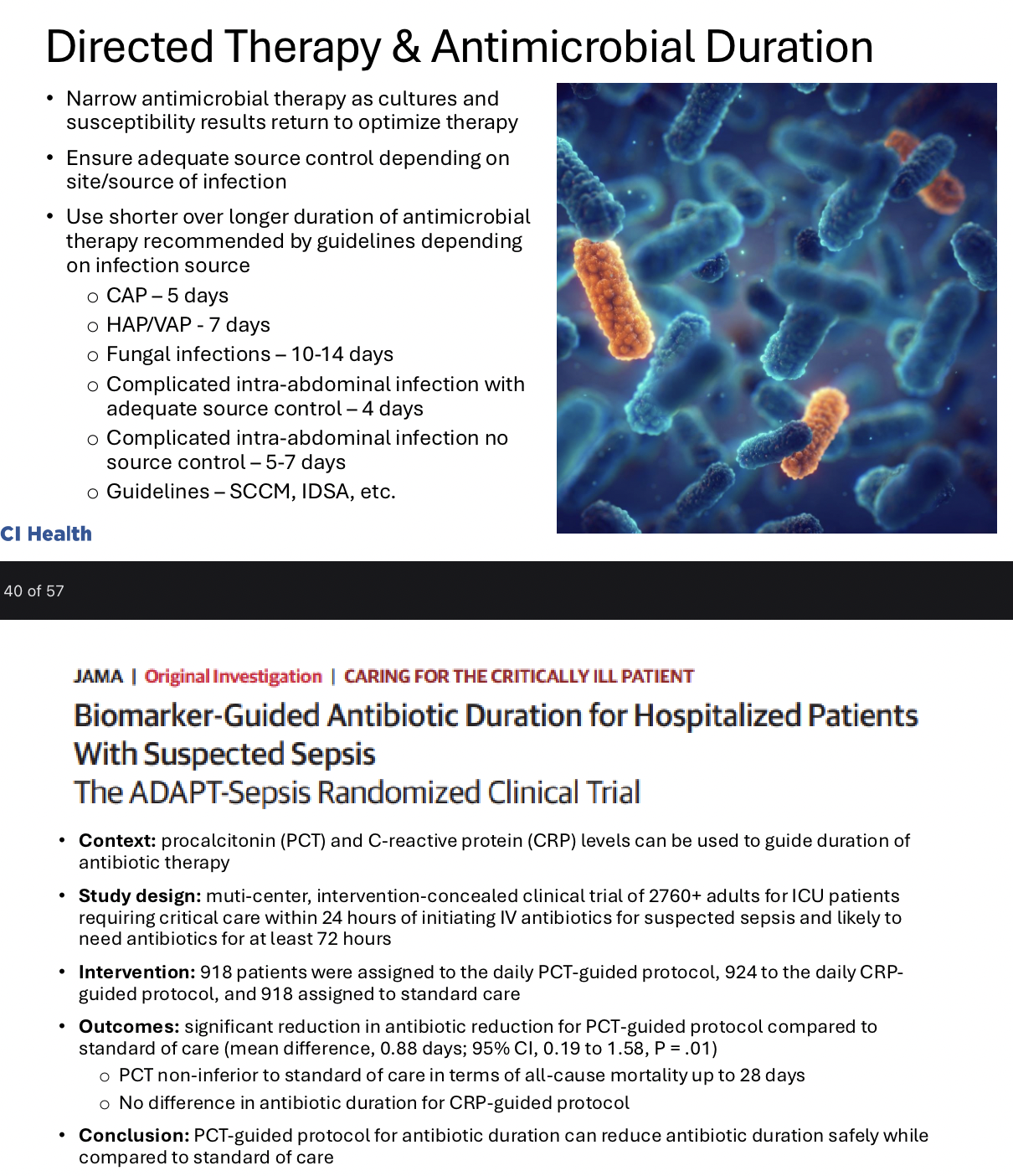 Tell me about directed therapy & antimicrobial duration