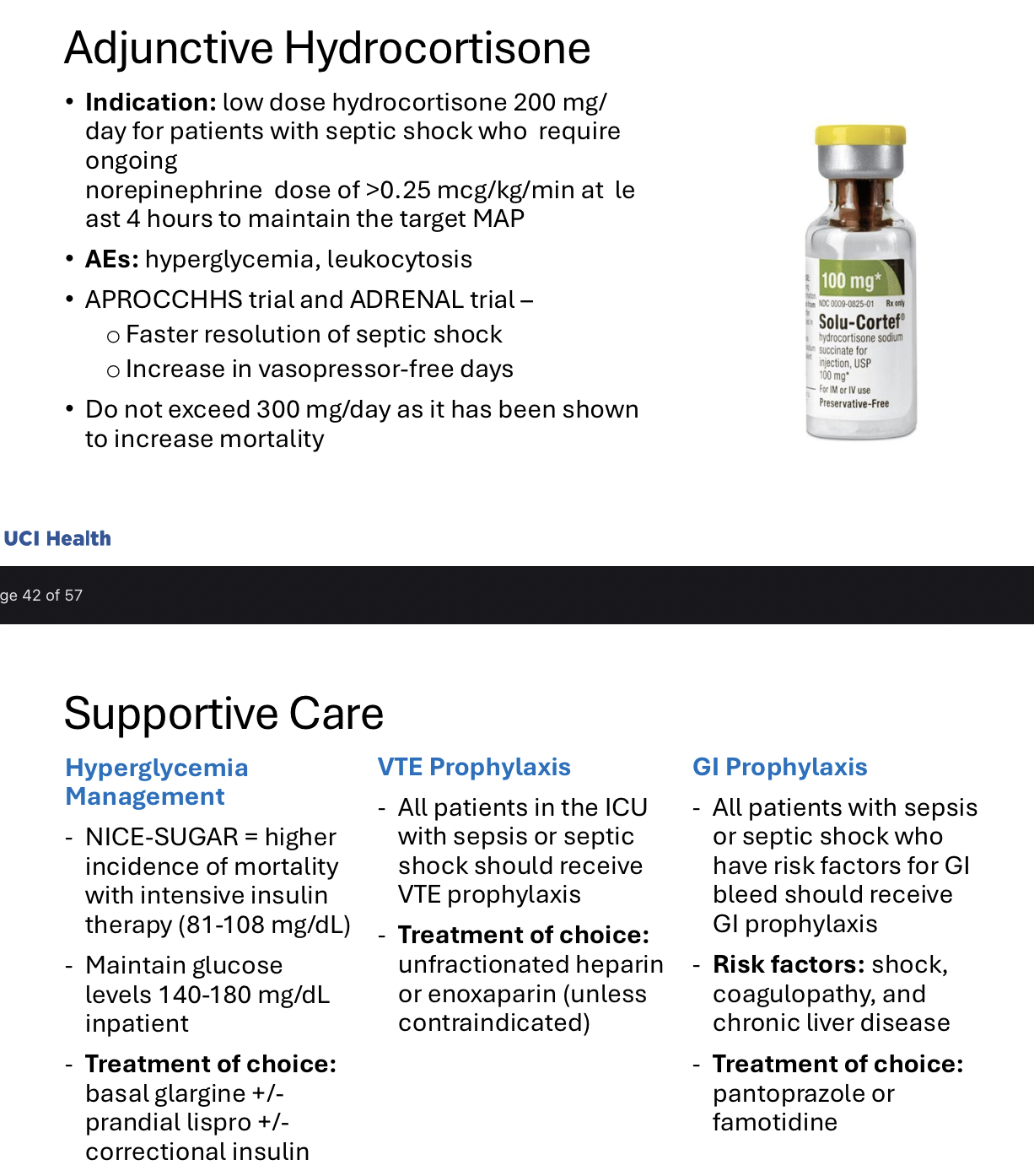 Tell me about adjunctive hydrocortisone and supportive care