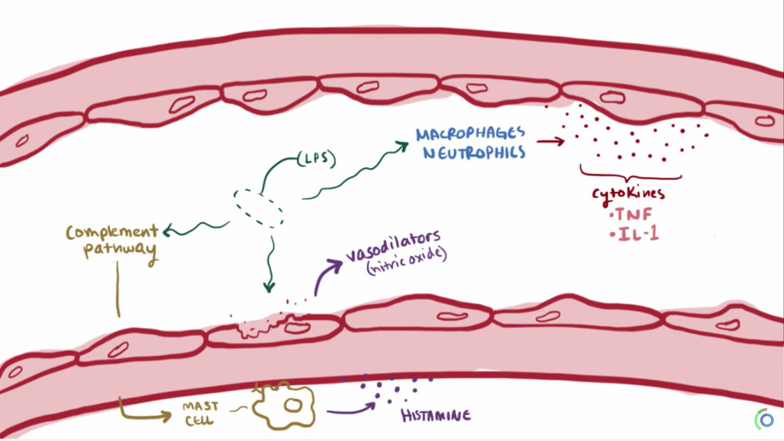 What chemical does mast cells release in repsonse to activation by the complement pathway?