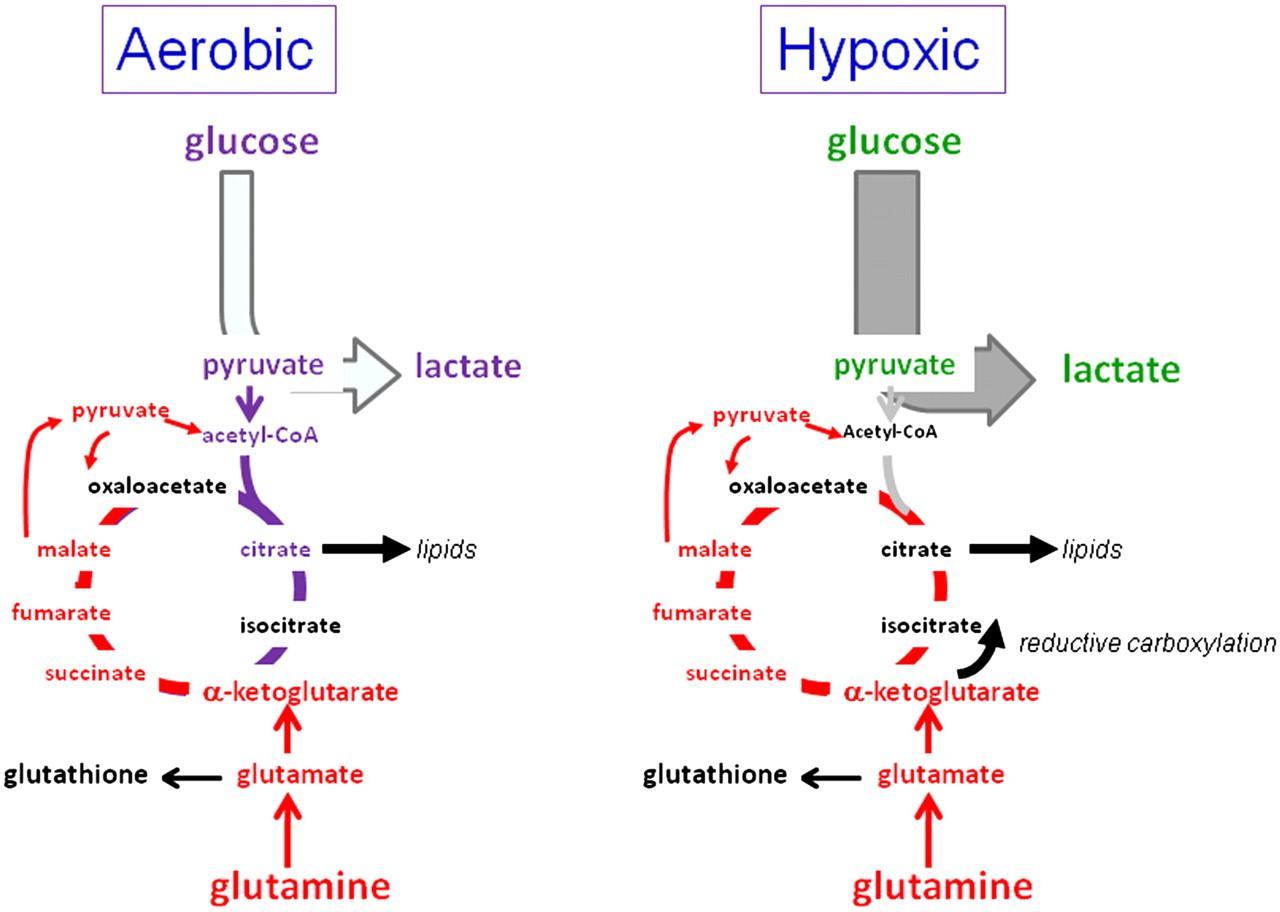 If oxygen supply is inadequate, mitochondria are unable to continue ATP synthesis at a rate sufficient to supply cells with ATP. To compensate, glycolysis is increased, and excess pyruvate is converted to lactate by lactate dehydrogenase, and is released into the blood stream