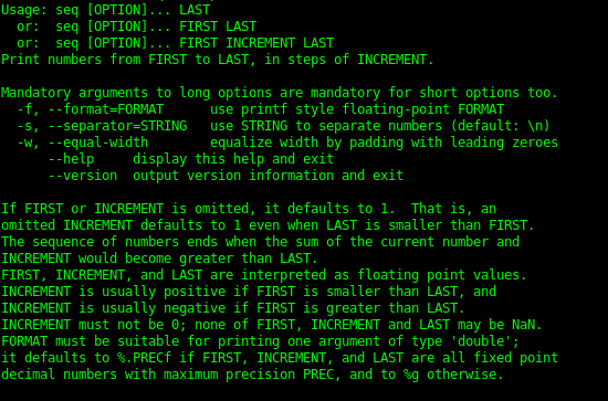 Print numbers from FIRST to LAST, in steps of INCREMENT.