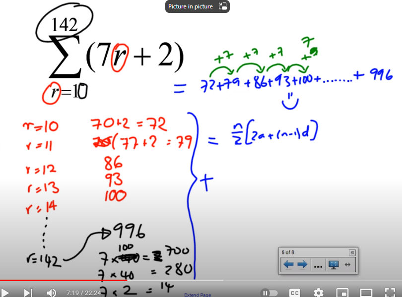 and use the sum of n terms for an arithmetic series