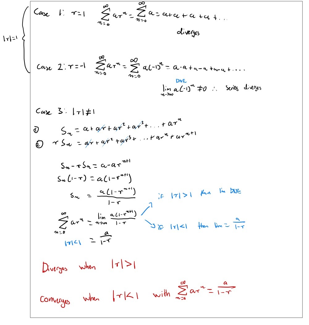 Idenitfy the name of this series. Identify when it converges (and how to calculate what it converges to) and when it diverges