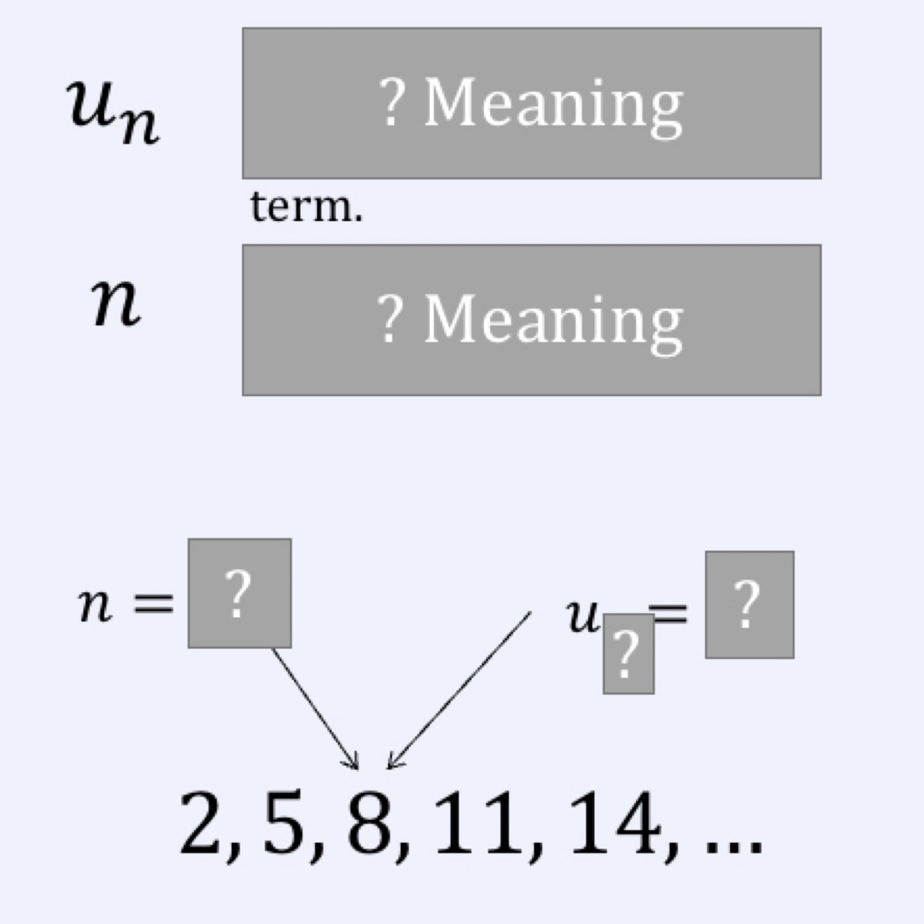 Each term is defined by relating to the previous one (term to term). Recurrence relation. Not arithmetic or geometric so no formulas apply
