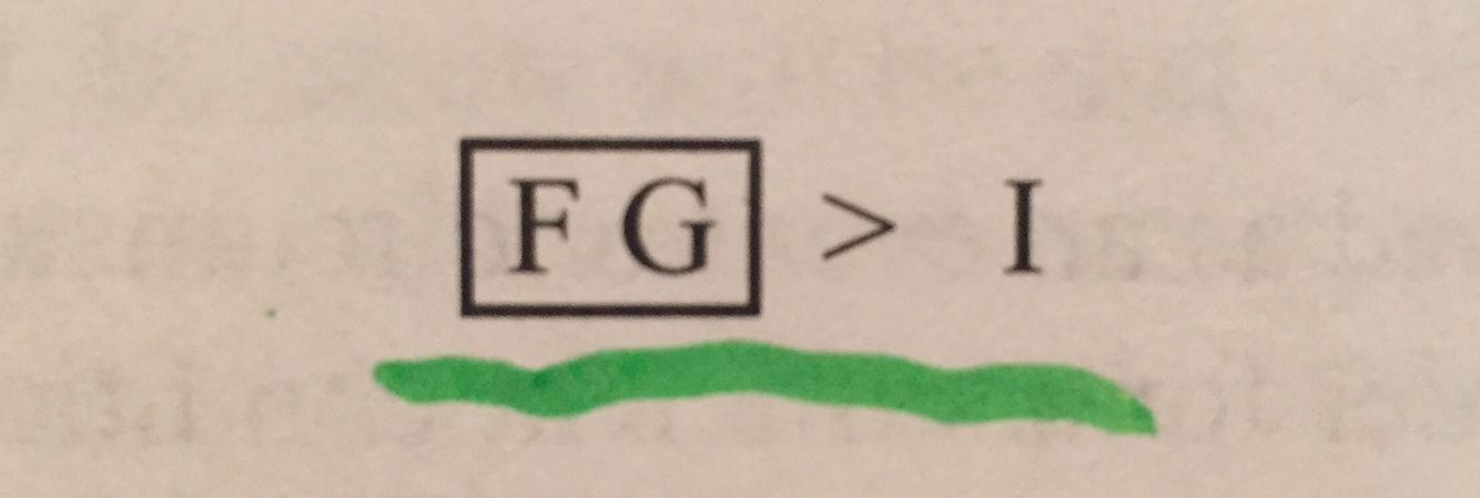F is displayed immediately prior to G, and G is displayed at some point before I.
