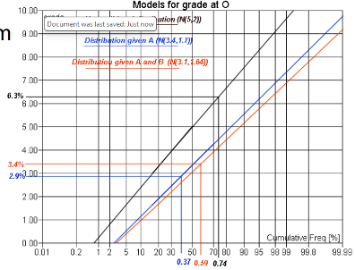 Knowing distribution of possible grades at x0 is normal with a mean of 5% and a standard deviation of 2%