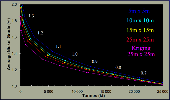 Dilution may be seen as the percent decrease of average grade above the cut-off introduced by the block support-size compared to the theoretical situation where selectivity is that of data support-size.